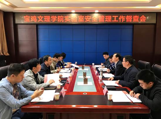 4月16日下午,由市教育局、市应急管理局、市消防支队、市市场监管局组成的宝鸡市实验室安全督查组一行6人,对我校实验室安全管理工作进行督导检查,副校长杨子元出席督查会。